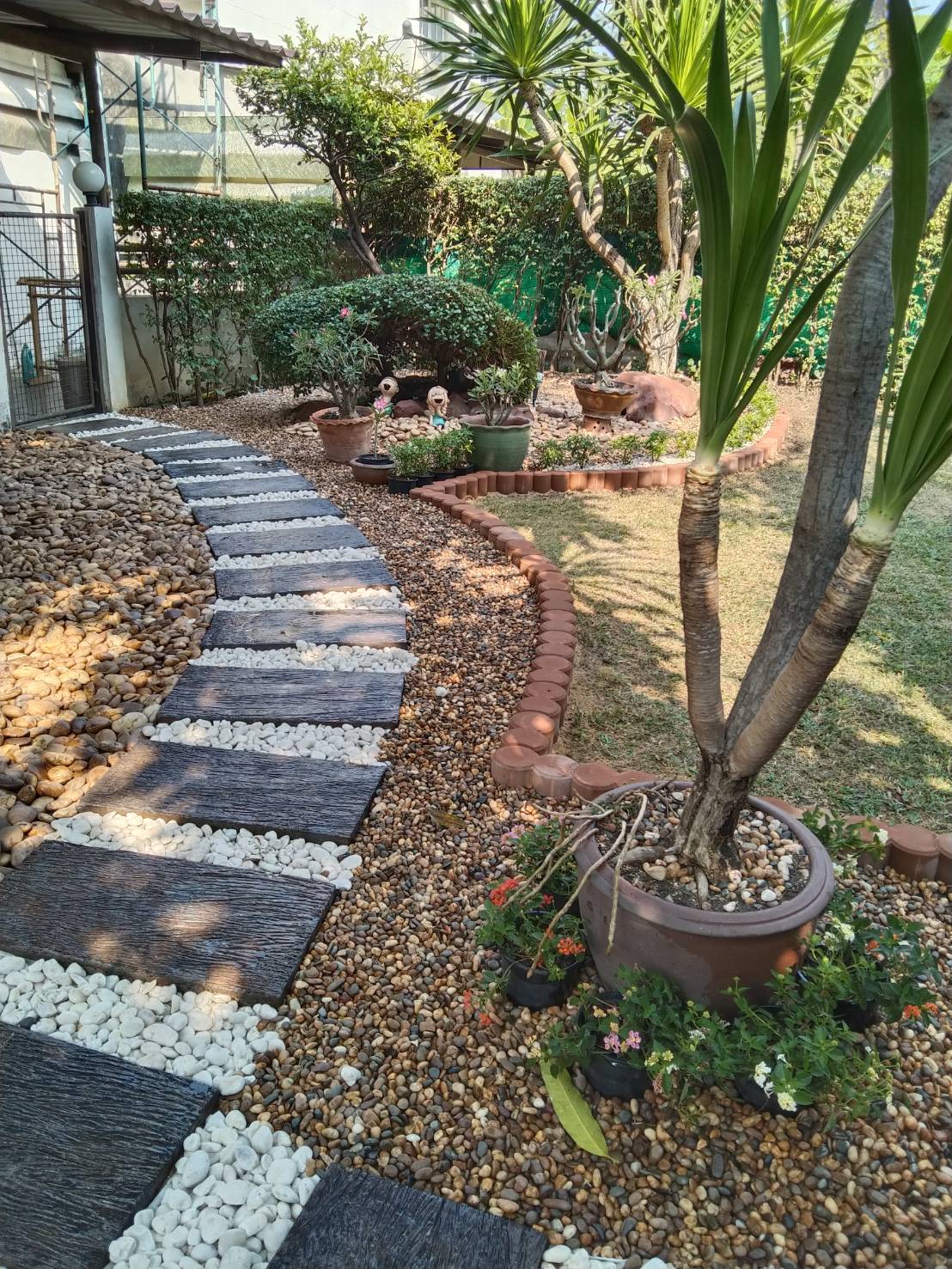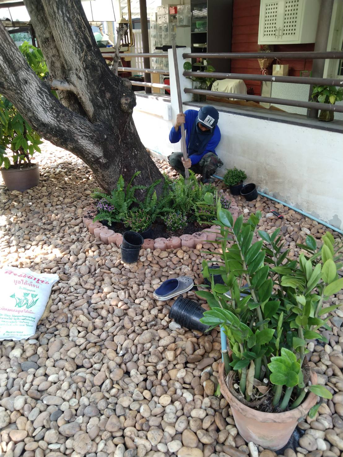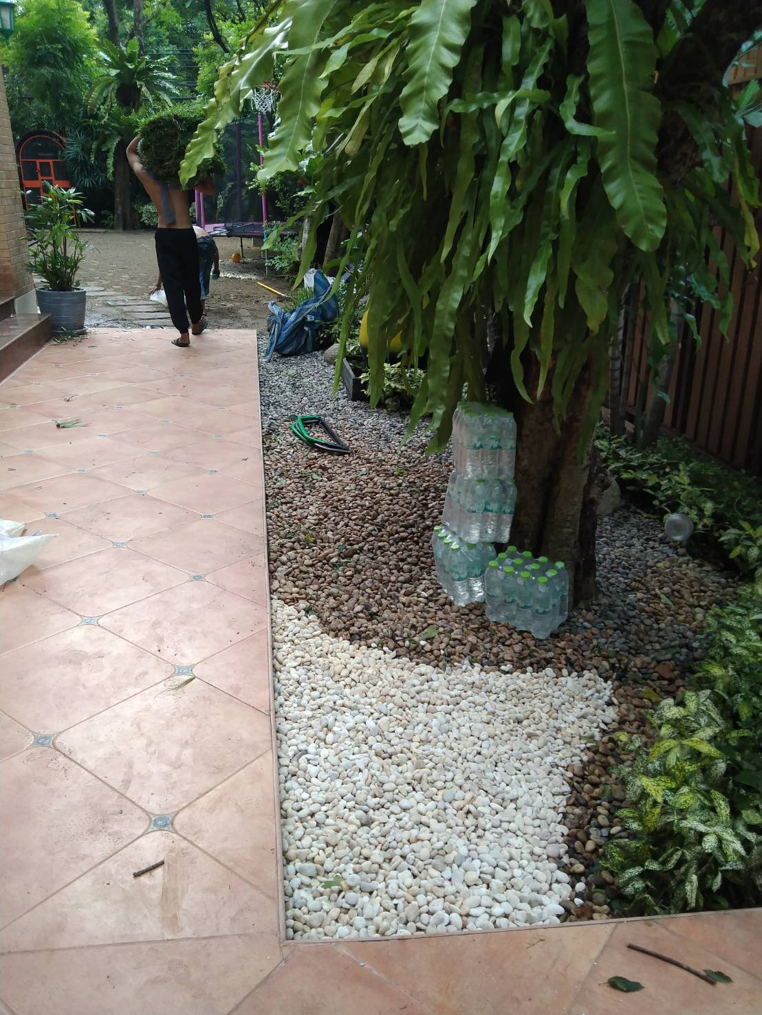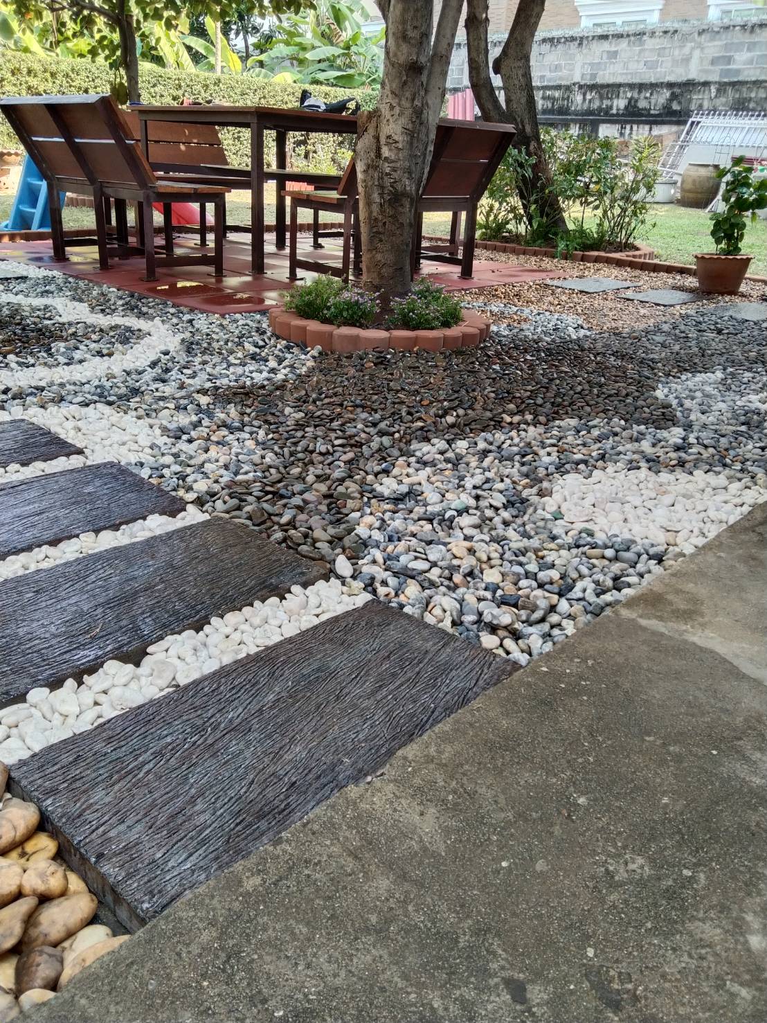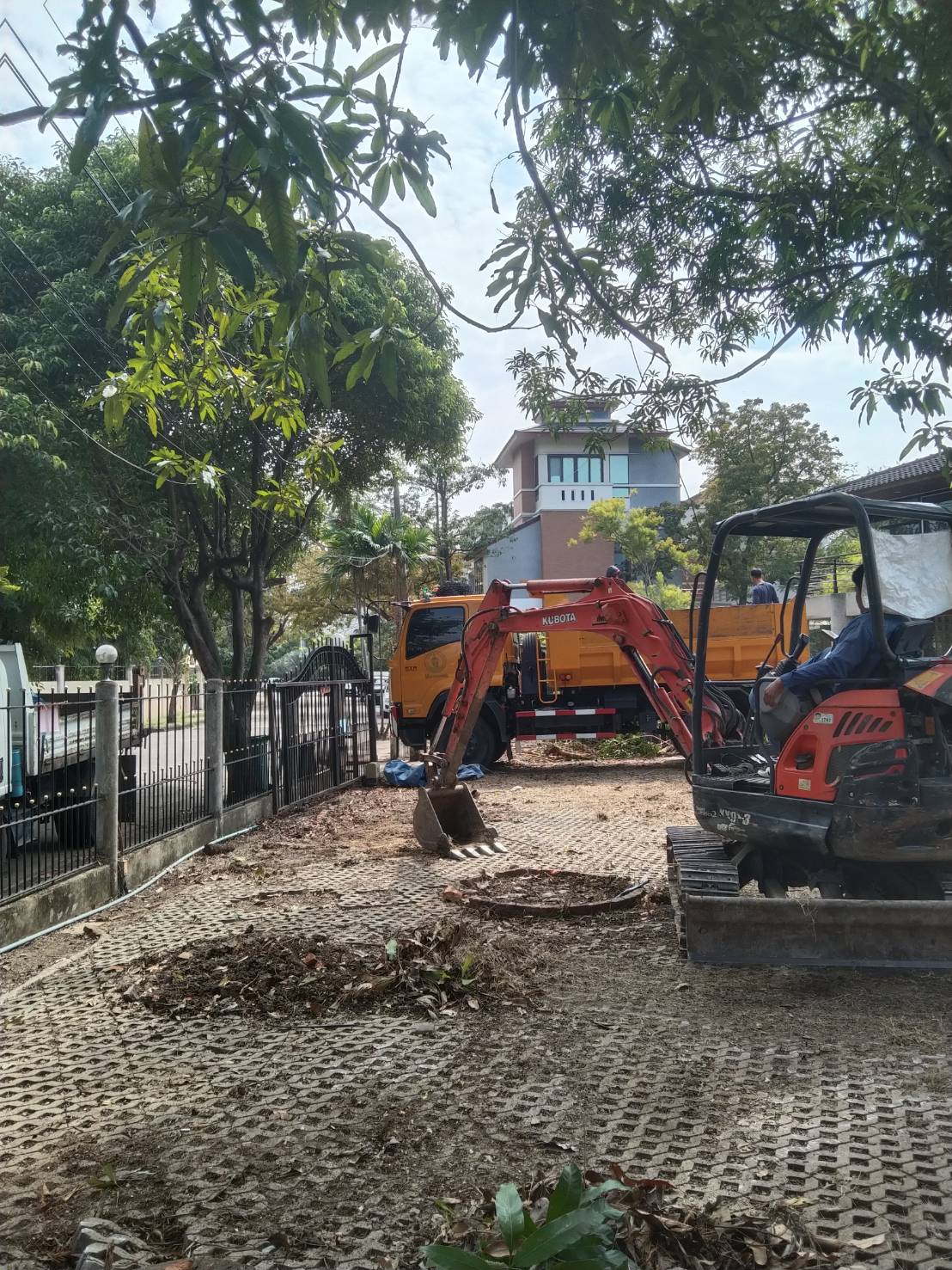 งานตัดแต่งสางโปร่งต้นไม้ใหญ่ เคลียร์พื้นที่รกร้าง จัดสวนหิน ปลูกหญ้า