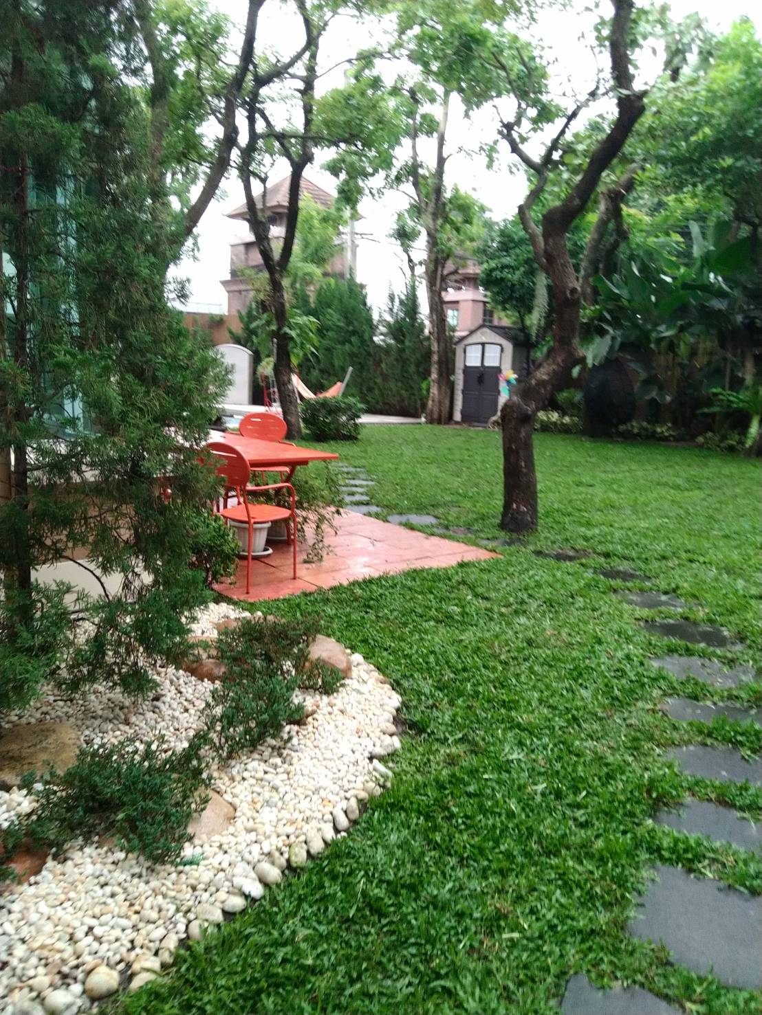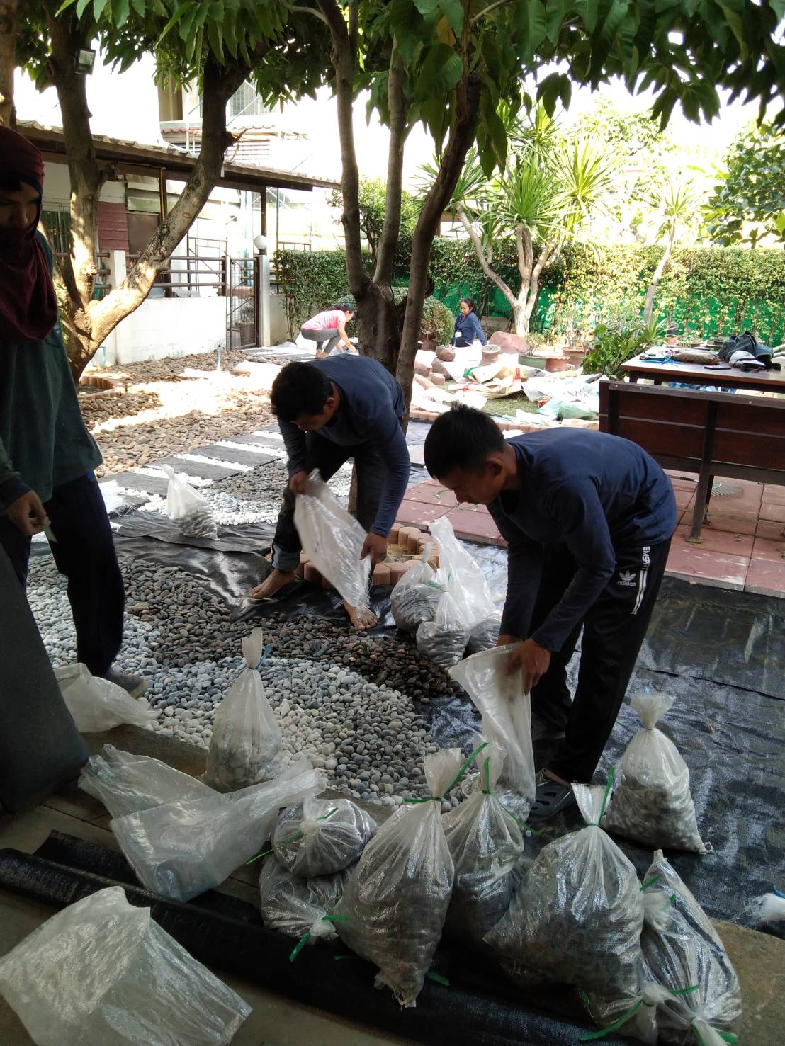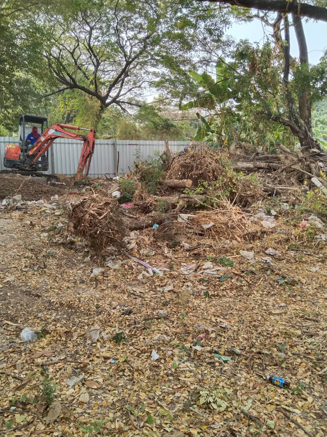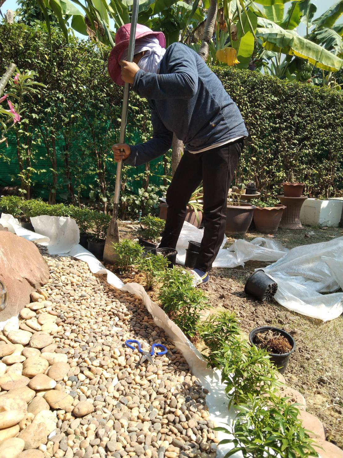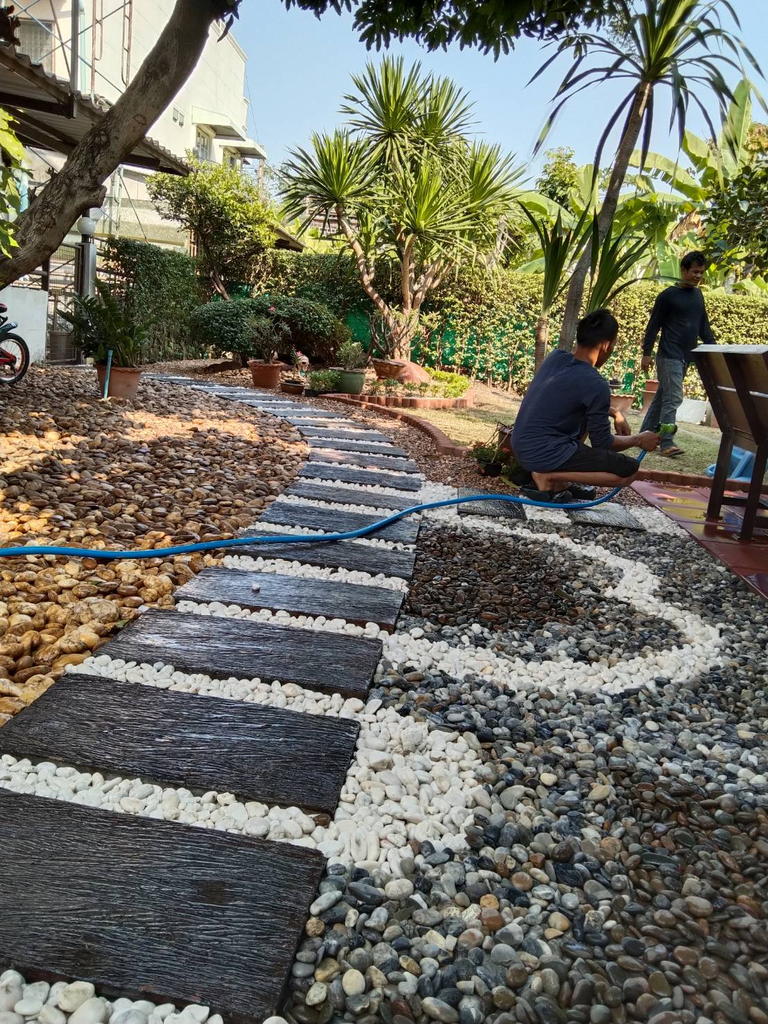 งานตัดแต่งสางโปร่งต้นไม้ใหญ่ เคลียร์พื้นที่รกร้าง จัดสวนหิน ปลูกหญ้า