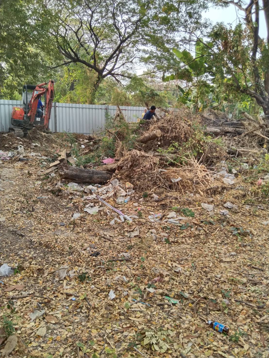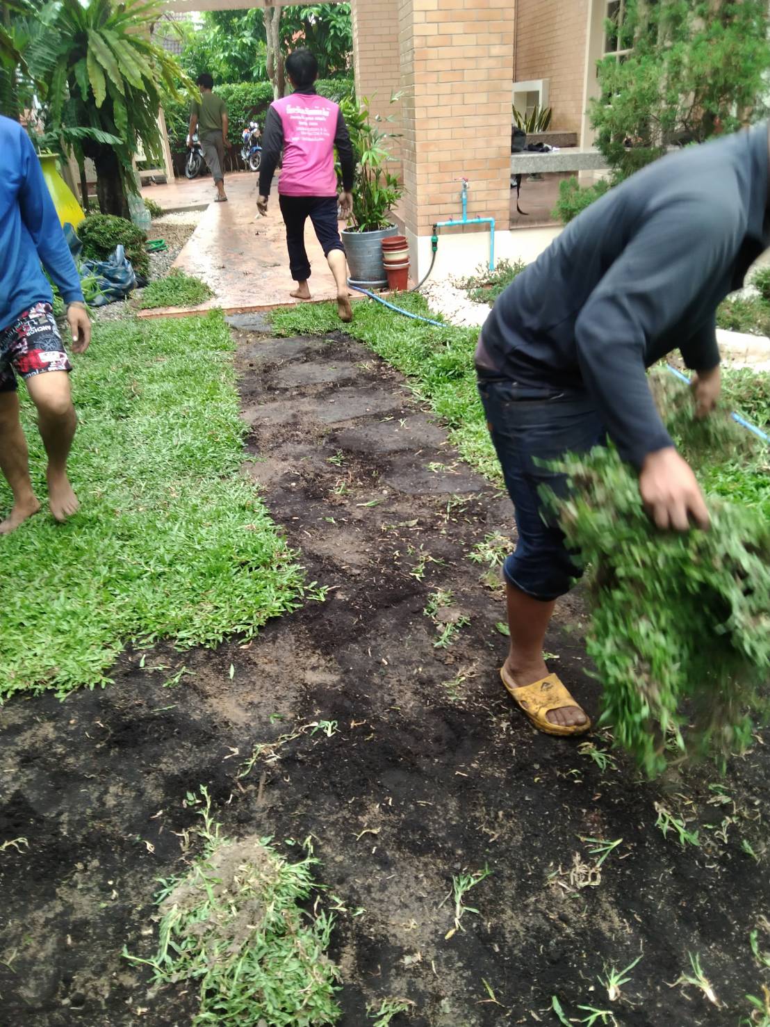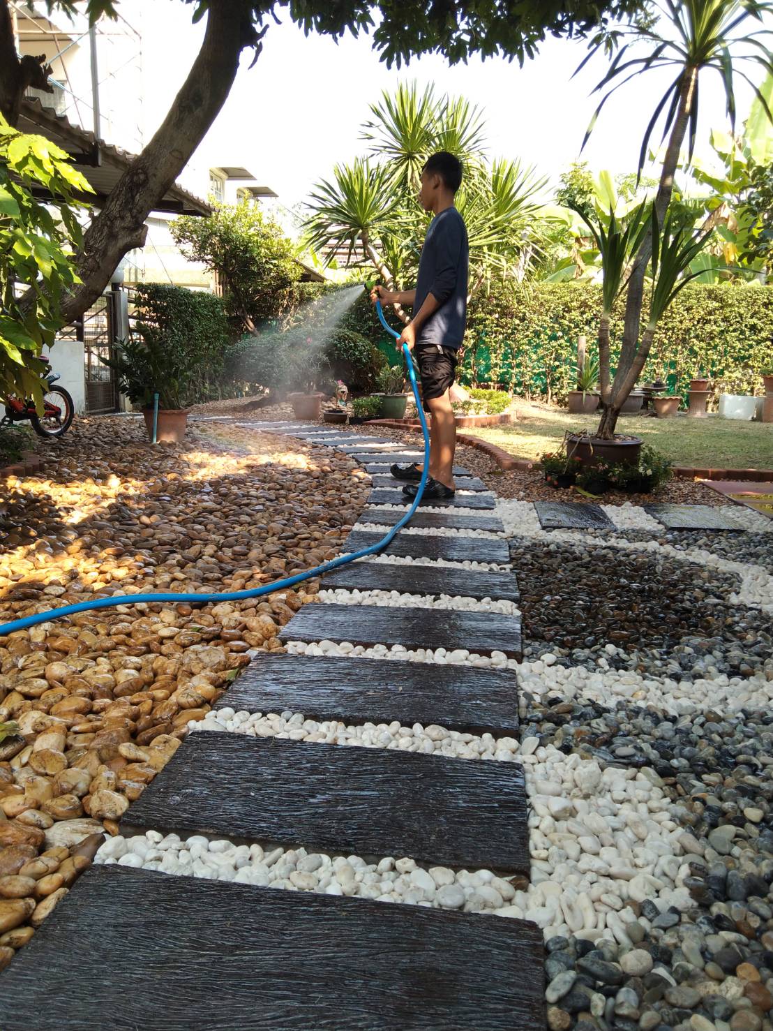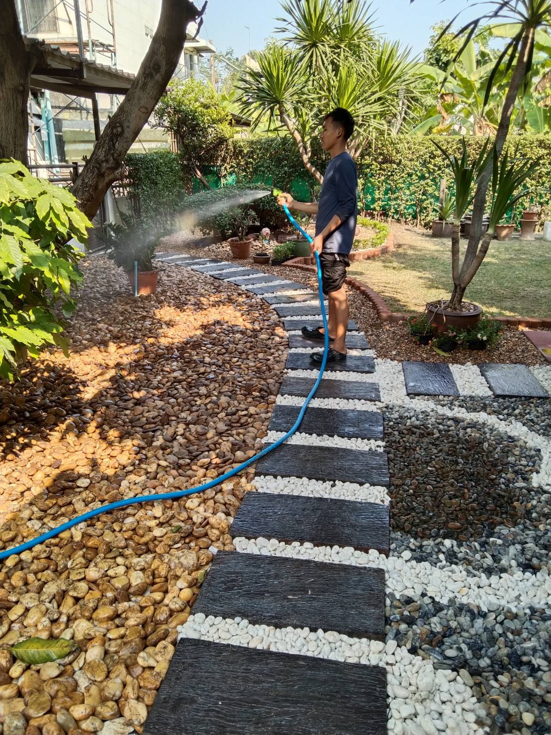 งานตัดแต่งสางโปร่งต้นไม้ใหญ่ เคลียร์พื้นที่รกร้าง จัดสวนหิน ปลูกหญ้า