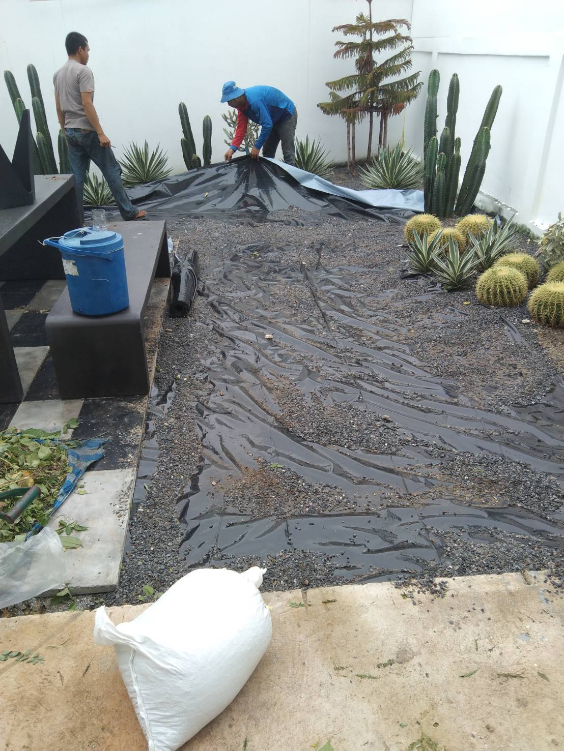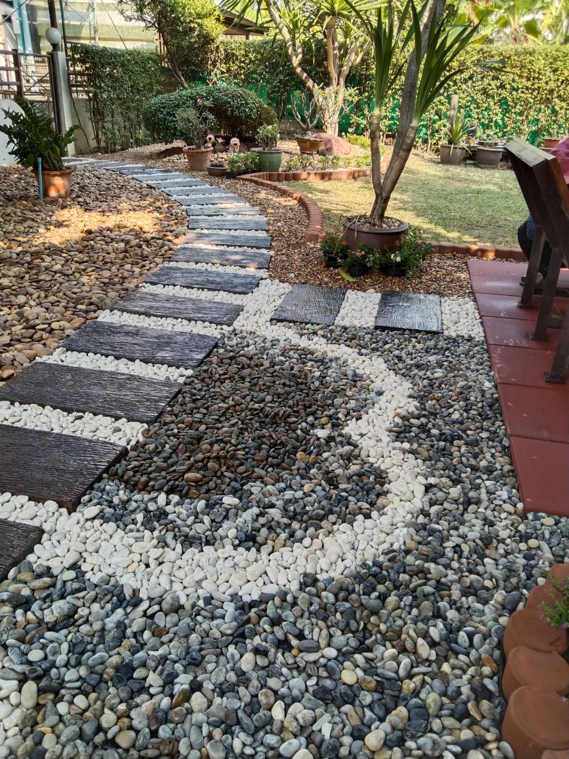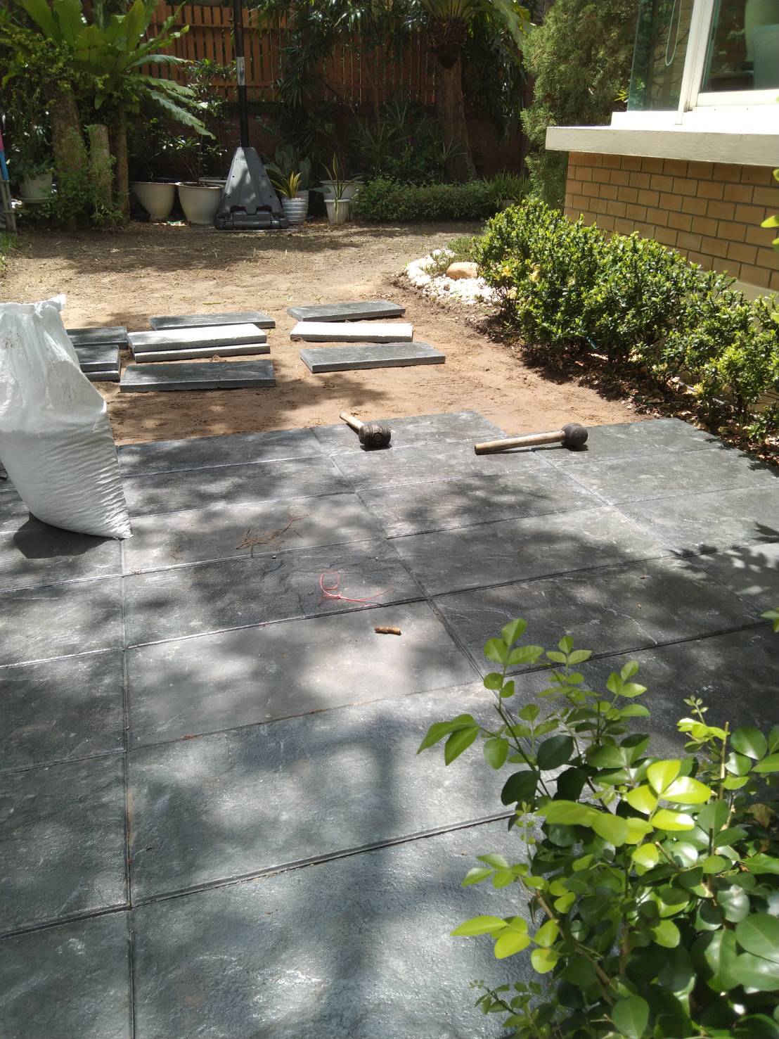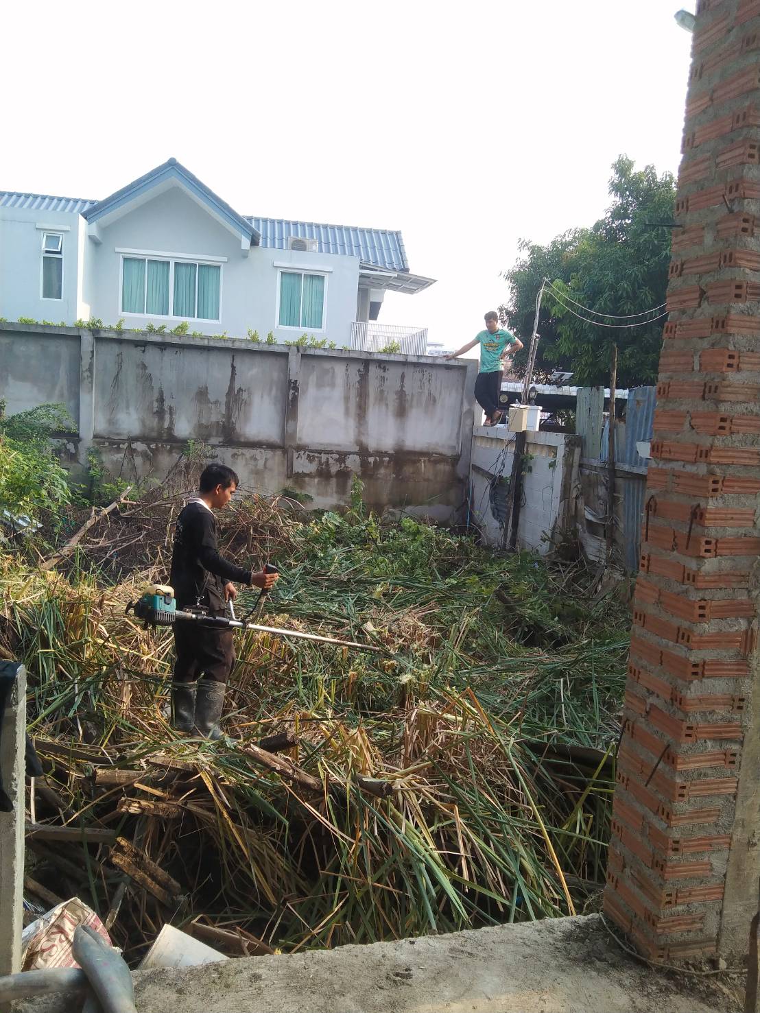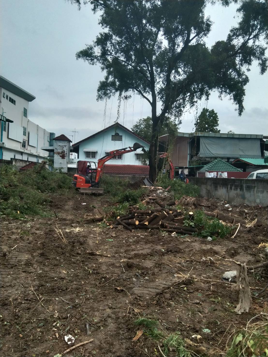งานตัดแต่งสางโปร่งต้นไม้ใหญ่ เคลียร์พื้นที่รกร้าง จัดสวนหิน ปลูกหญ้า