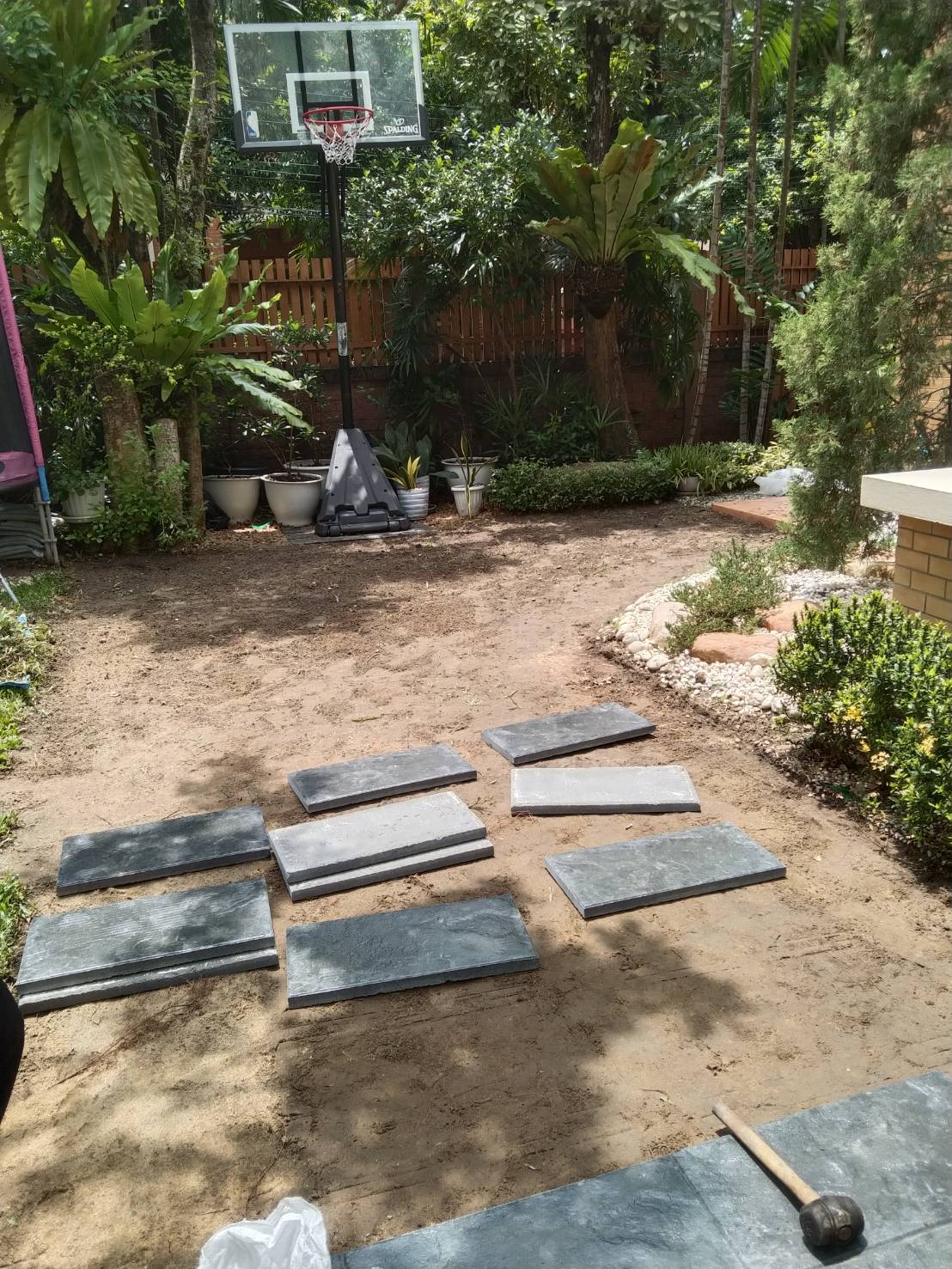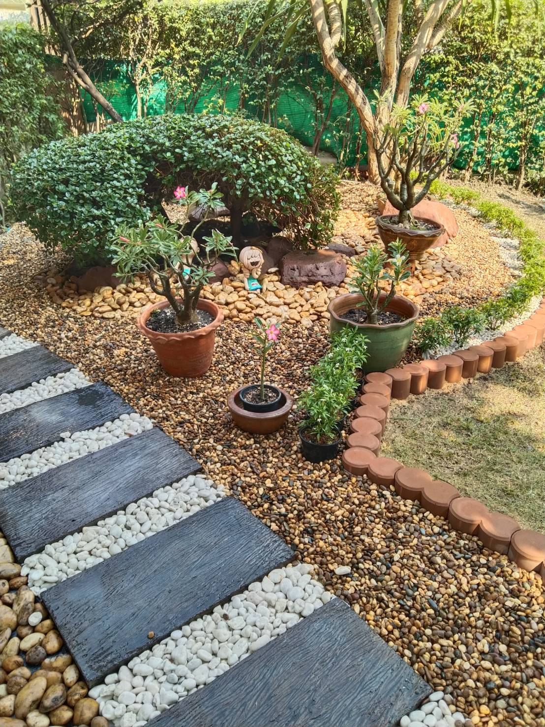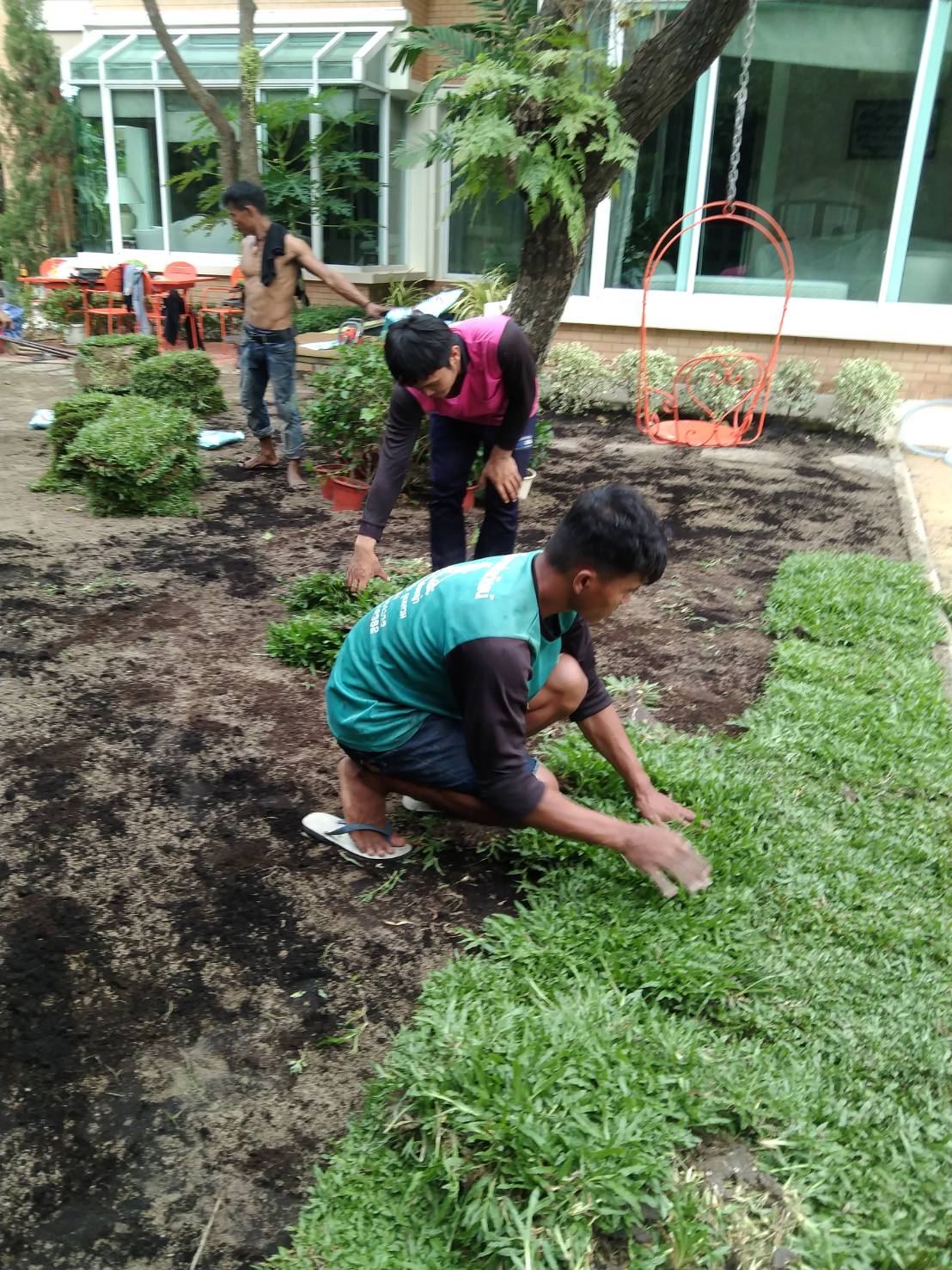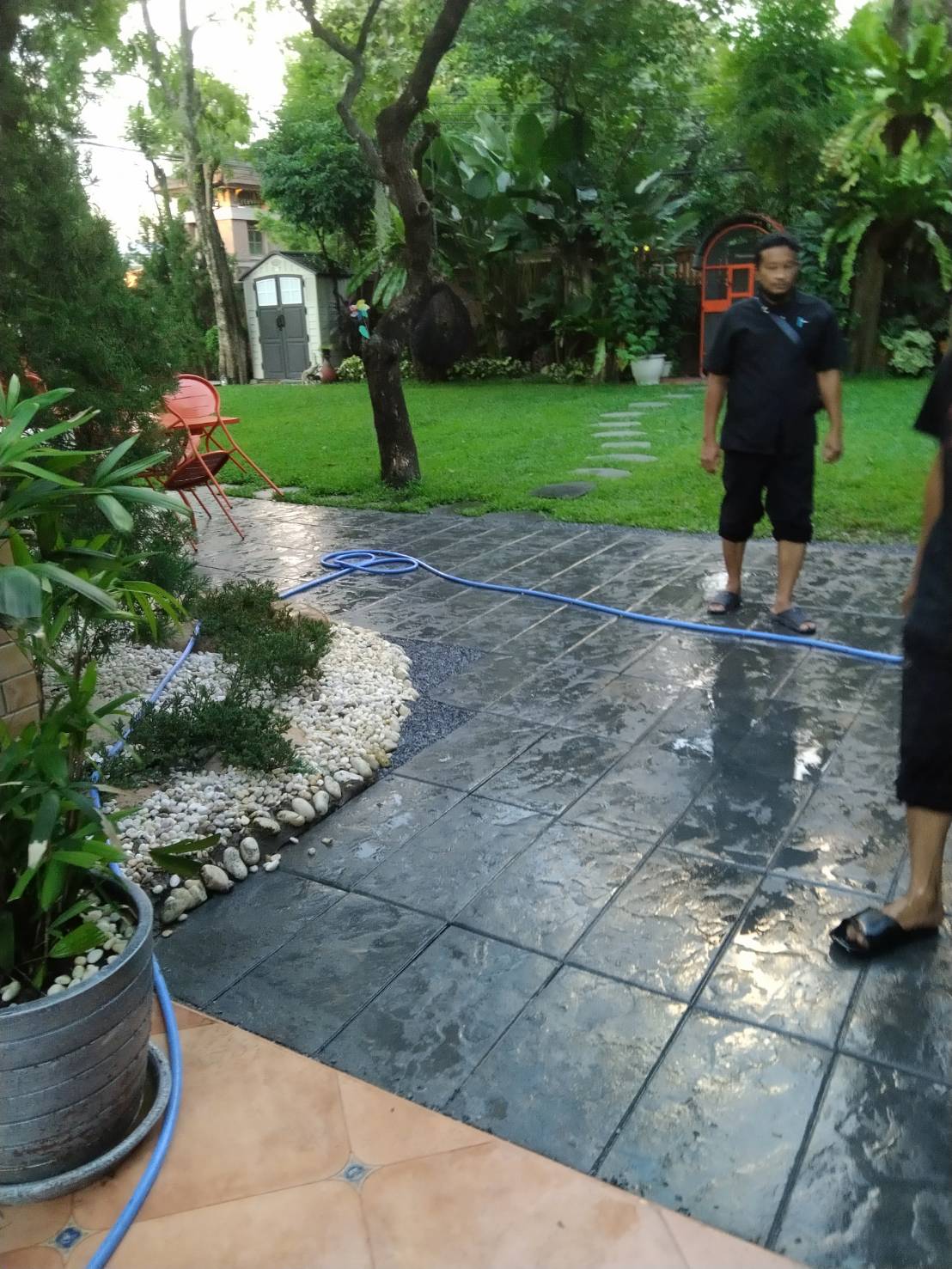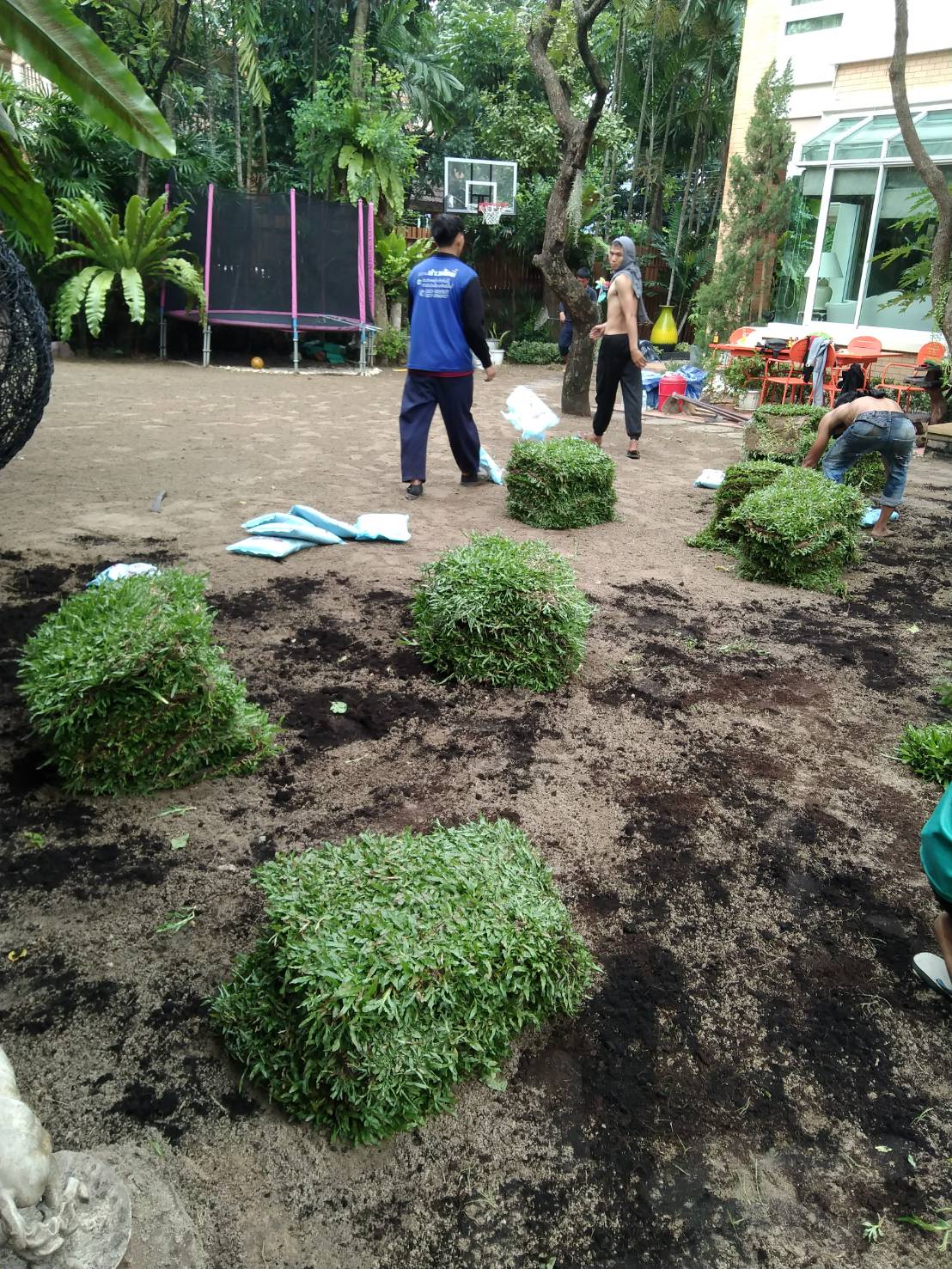 งานตัดแต่งสางโปร่งต้นไม้ใหญ่ เคลียร์พื้นที่รกร้าง จัดสวนหิน ปลูกหญ้า